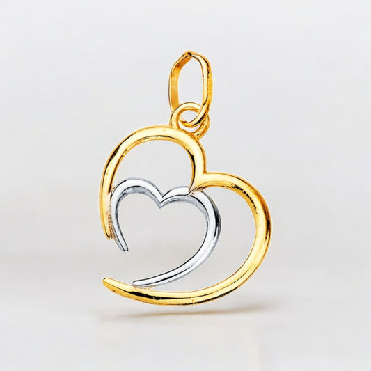 18k colgante oro bicolor doble corazón en brillo 14×13 mm