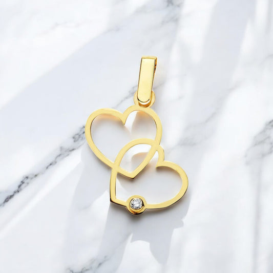 18k colgante oro amarillo 2 corazones 17×15 mm