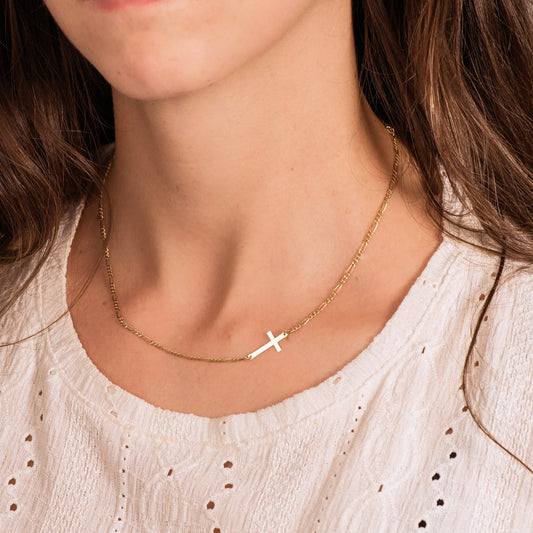 18k collar oro amarillo cruz 8 × 5 mm con diamante (0.015 qt.)