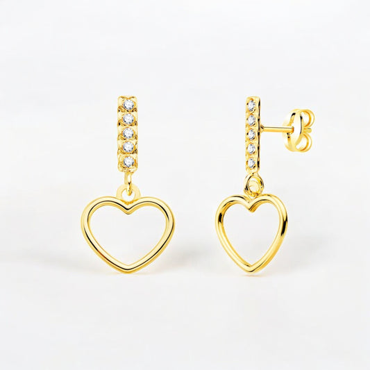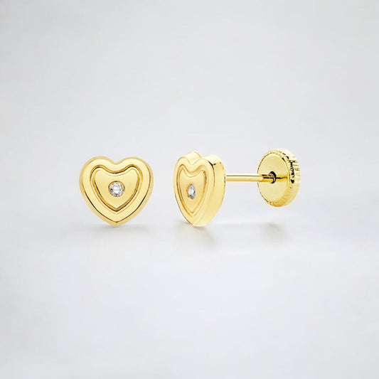 18k pendientes oro amarillo corazón circonita 6.5×6 mm cierre tuerca